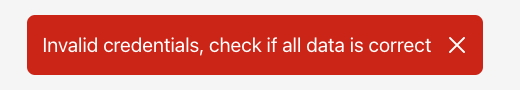 If you input bad credentials, proceeding will not be possible and you will be asked to check the credentials and resubmit the form: