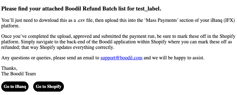 Merchants will need to contact a customer in order to obtain their bank account details, to process a refund manually. The daily CSV file containing all refunds will assist the merchant in providing a reference for the transaction.