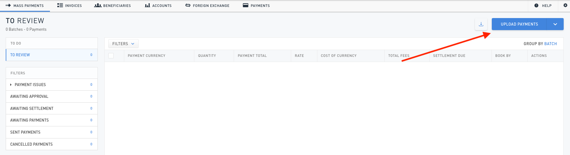In this case merchant can upload received CSV file to mass payments section, making the process easier.